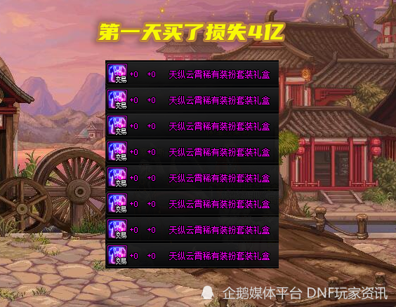 损失超过4亿金币是什么概念?根据“金币寄售”来看,差不多能多买3套五一耕耘礼包,可惜不了解行情,就这样白白的亏损了。当然对于土豪玩家来说,这点金币根本不在乎,九牛一毛而已!